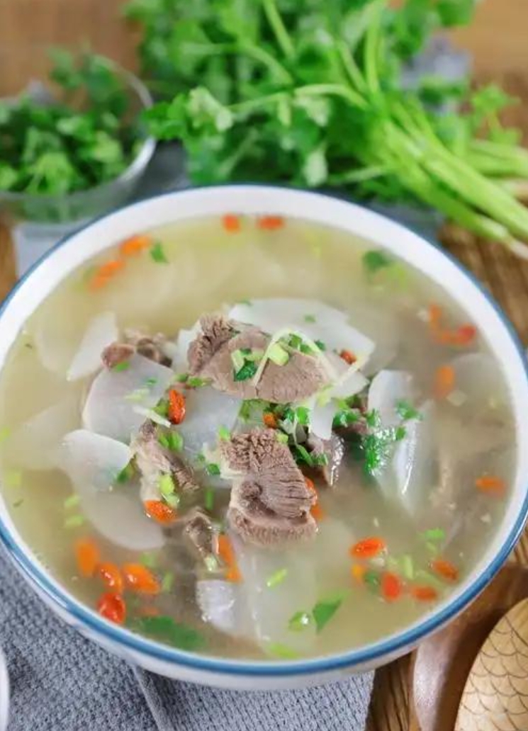 羊肉汤是一道传统的中式汤品,具有以下一些功效: