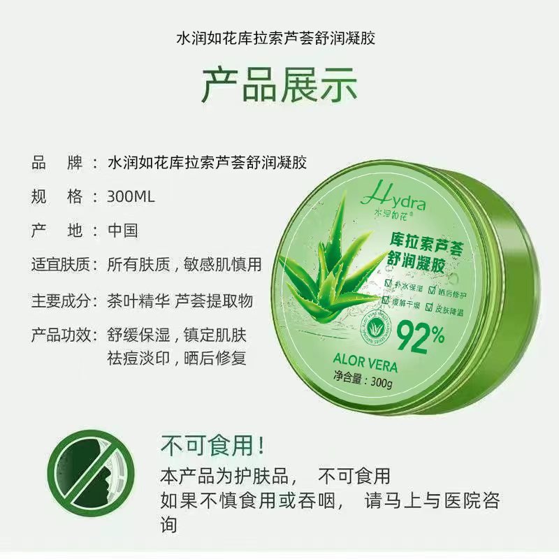 作用:1、延缓皮肤衰老;2、营养保湿;3、芦荟胶还可以消炎杀菌、促进局部的新陈代谢、收敛创口、促进细胞再生,也对疤痕有一定的效果;4、芦荟胶还有一定的美白、祛斑的作用;5、防晒。