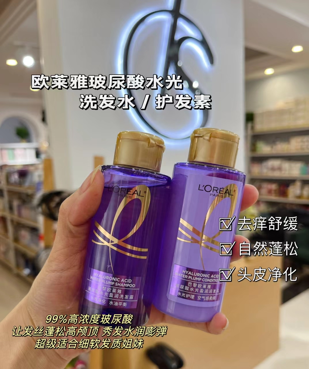 欧莱雅玻尿酸水光洗发水/护发素 100mlx2