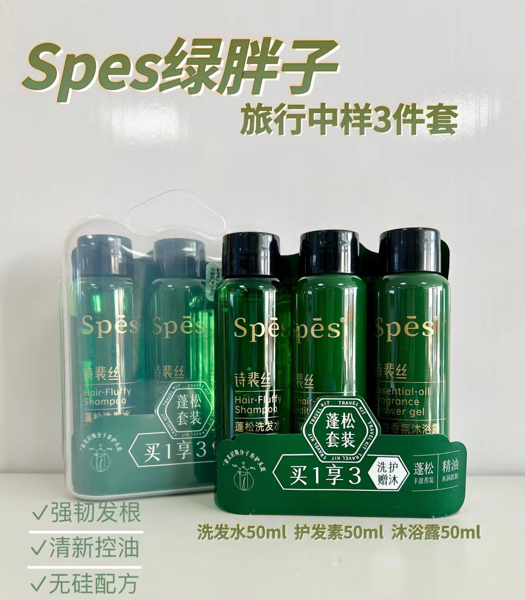 Spes绿胖子 旅行中样3件套 洗发水50ml + 护发素50ml + 沐浴露50ml