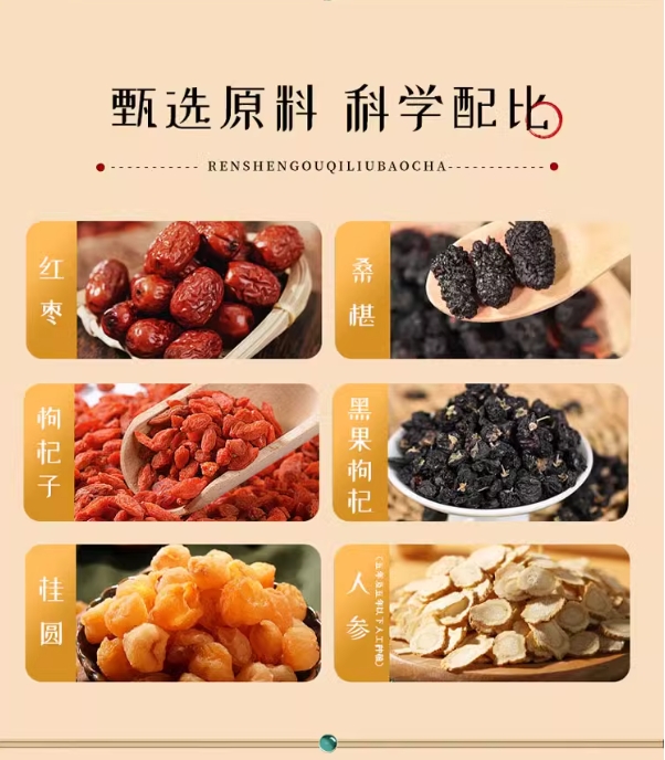 六宝养生茶人参枸杞桑葚桂圆红枣独立包装免熬煮男士补精补肾养身4盒