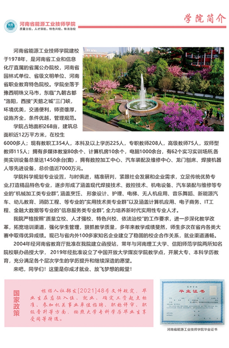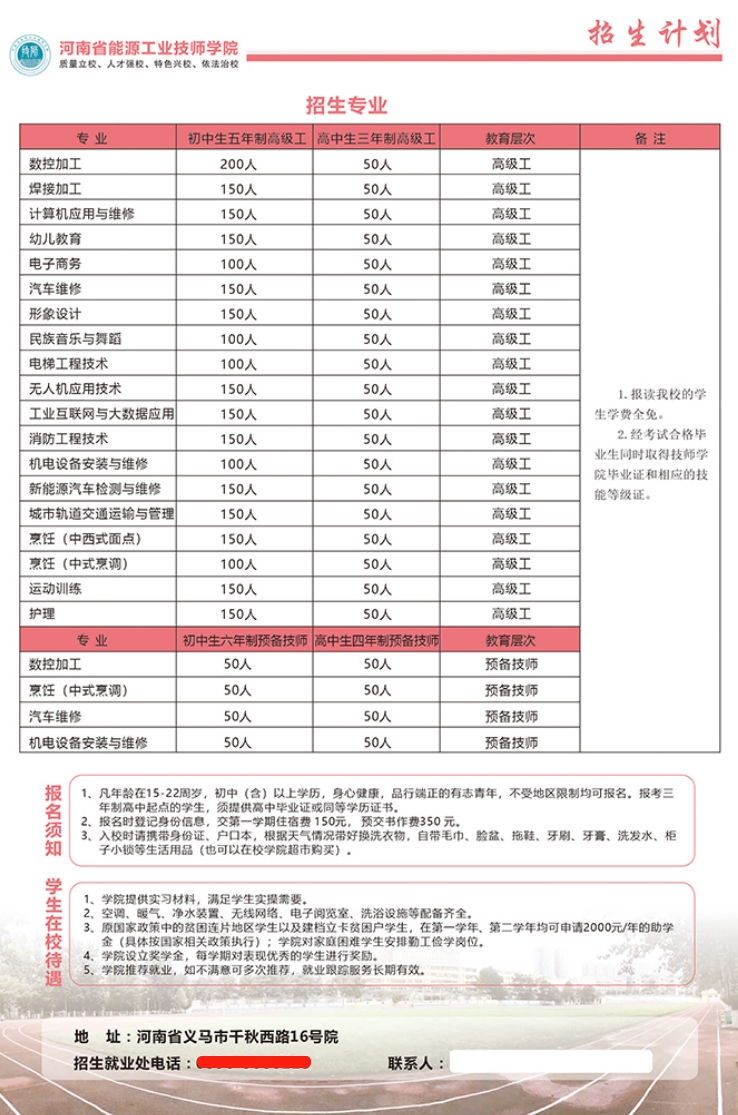 河南省能源工业技师学院25年招生计划